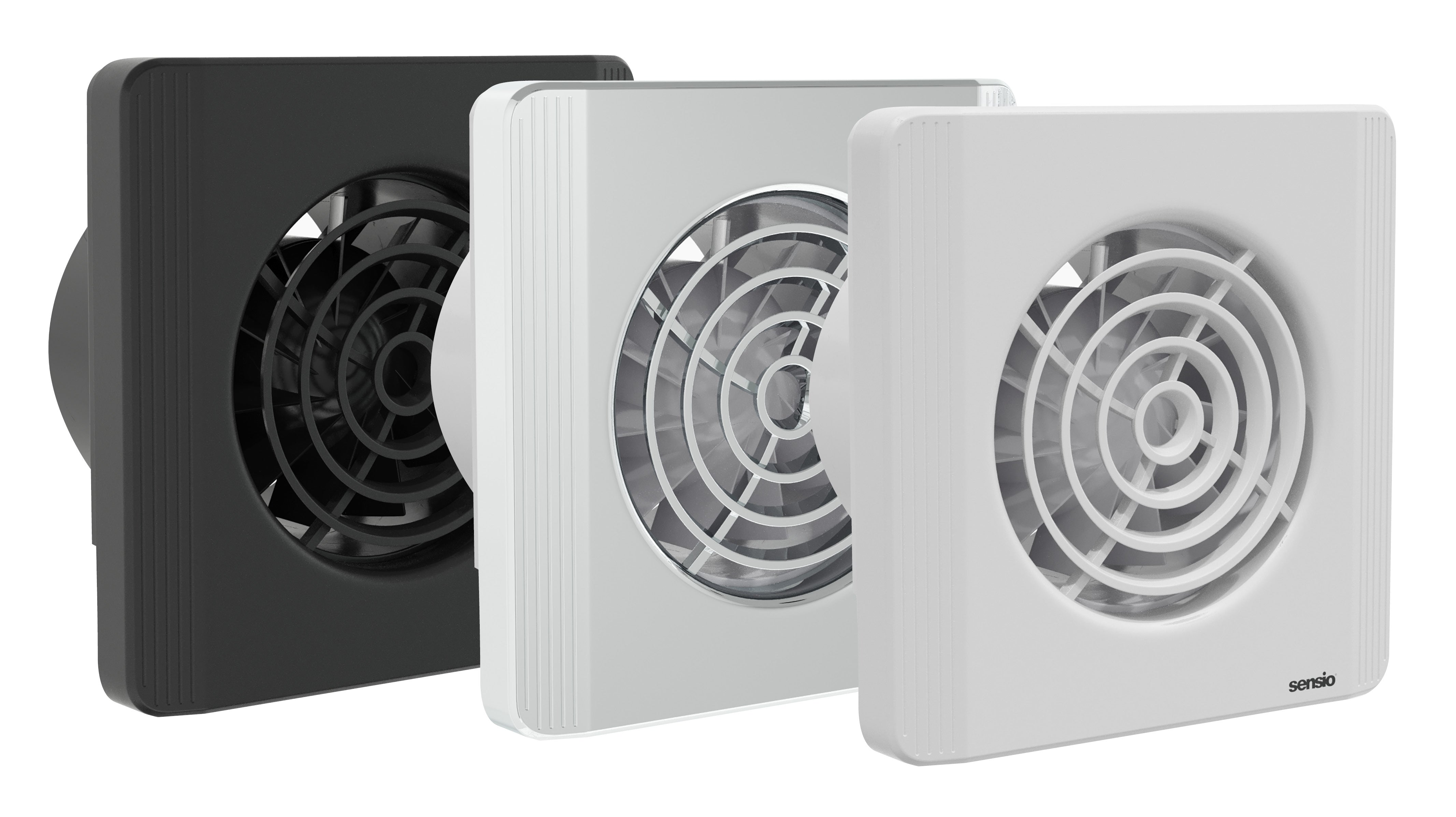 Enhance your bathroom with a modern ventilation fan with 3 finish options; White, Chrome and Black
