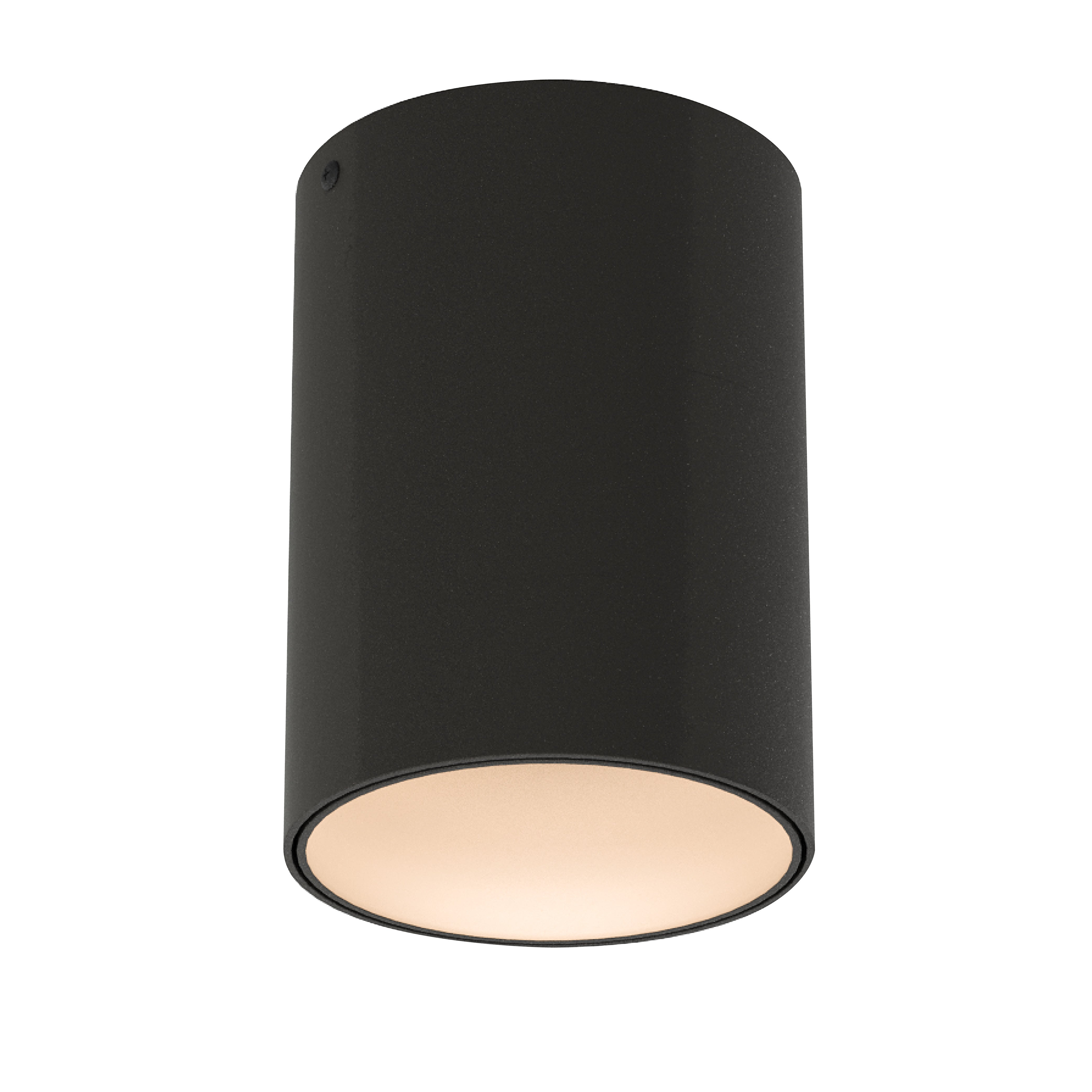 Contemporary matte black cylinder ceiling light designed especially for the bathroom. Requires 1 GU10 bulb (bulb not included).