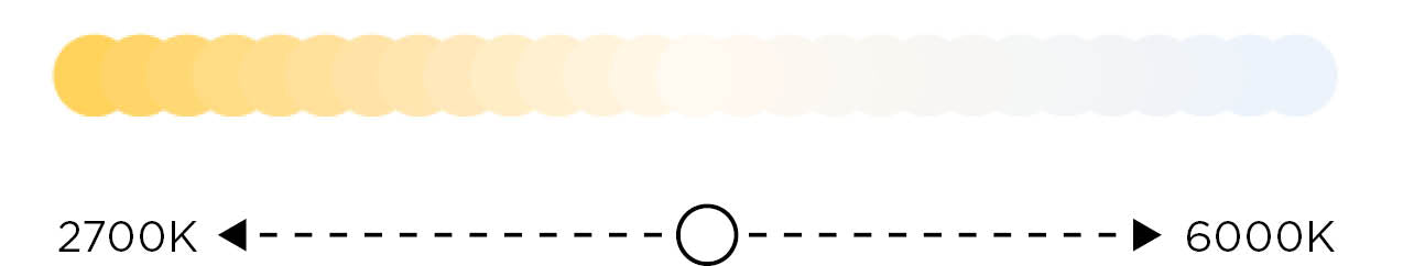 CCT le brinda al usuario el poder de recorrer todo el espectro de temperaturas entre luz fría, natural y cálida, lo que le permite imitar con precisión las condiciones de iluminación exterior, una característica que se ha demostrado científicamente que tiene un impacto positivo en nuestra salud.< /p>