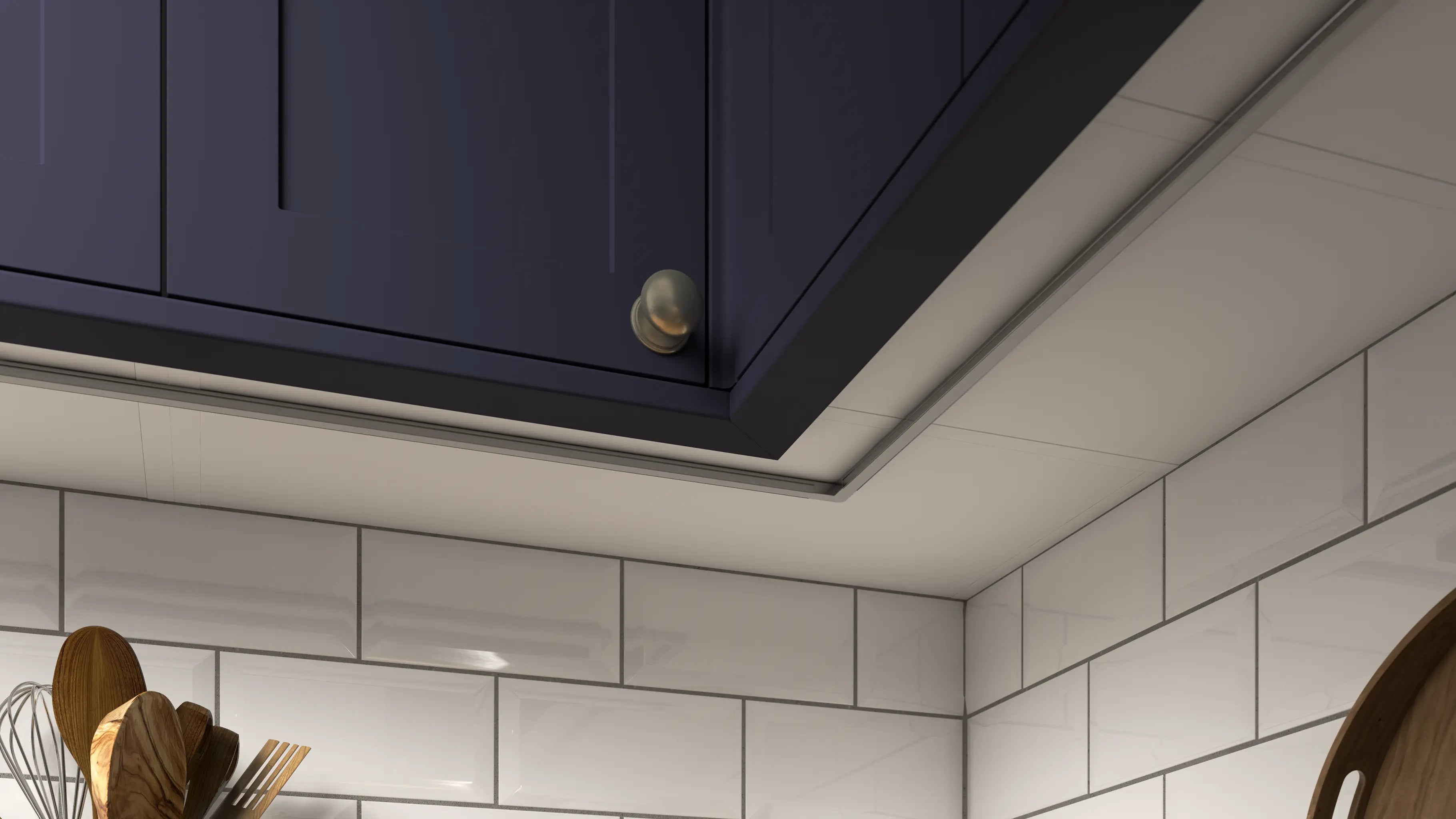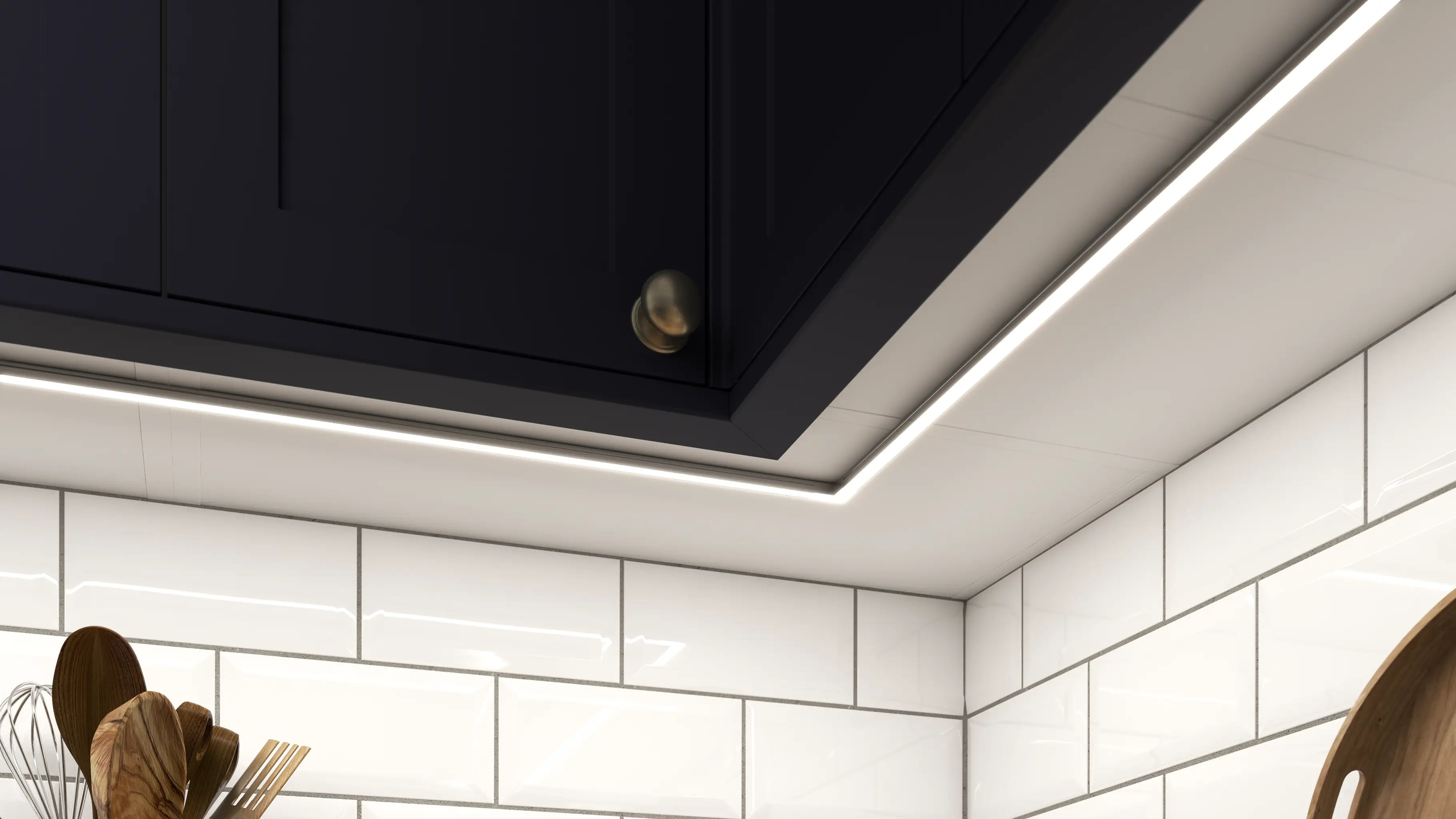 La cubierta difusora de nuestros perfiles permite una transferencia de luz óptima mientras difunde los diodos individuales de la tira de LED para producir un suave brillo ambiental.