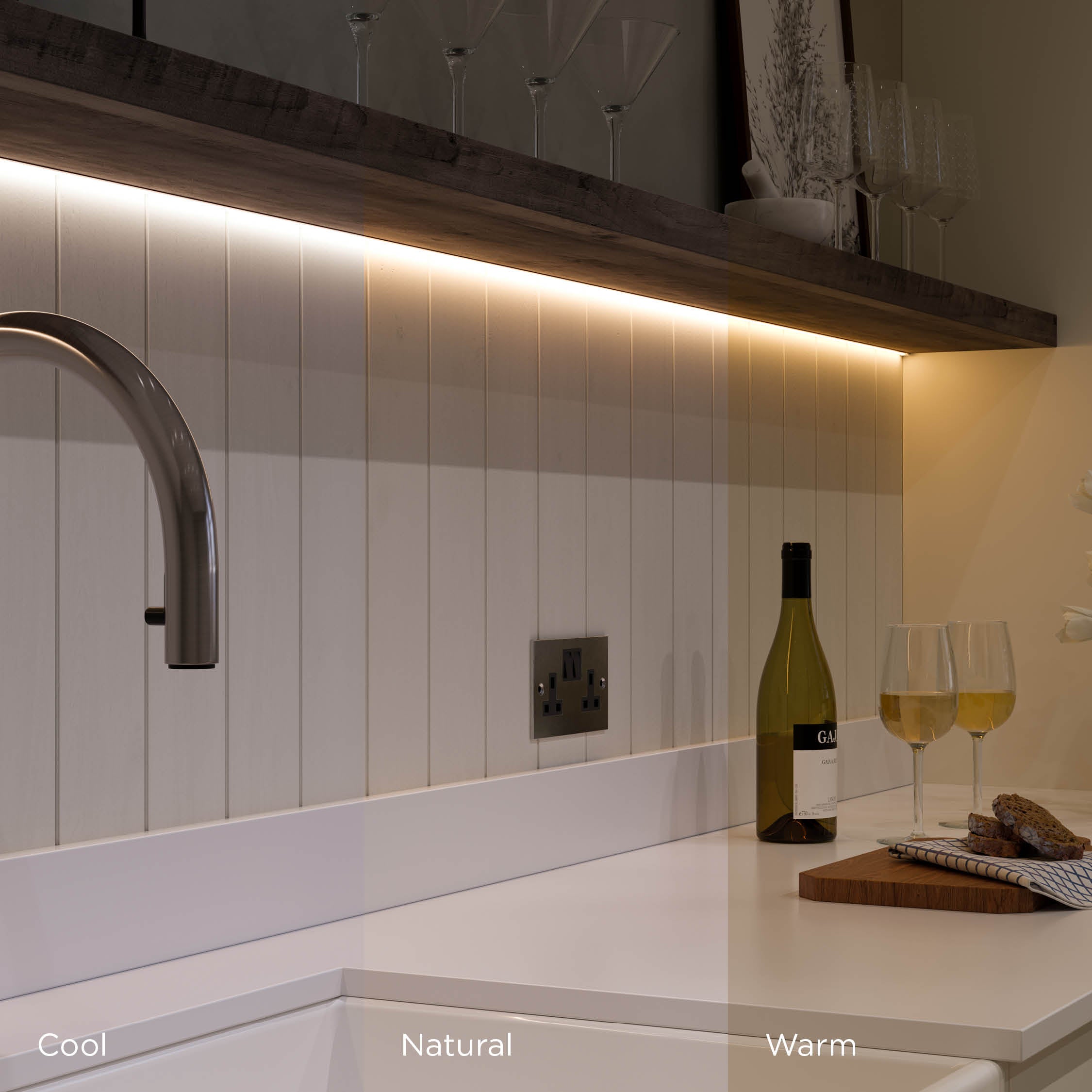 Las tiras de LED flexibles brindan una solución versátil para agregar profundidad a los muebles y la arquitectura. Particularmente eficaz junto a zócalos, estanterías y para resaltar nichos y huecos arquitectónicos.