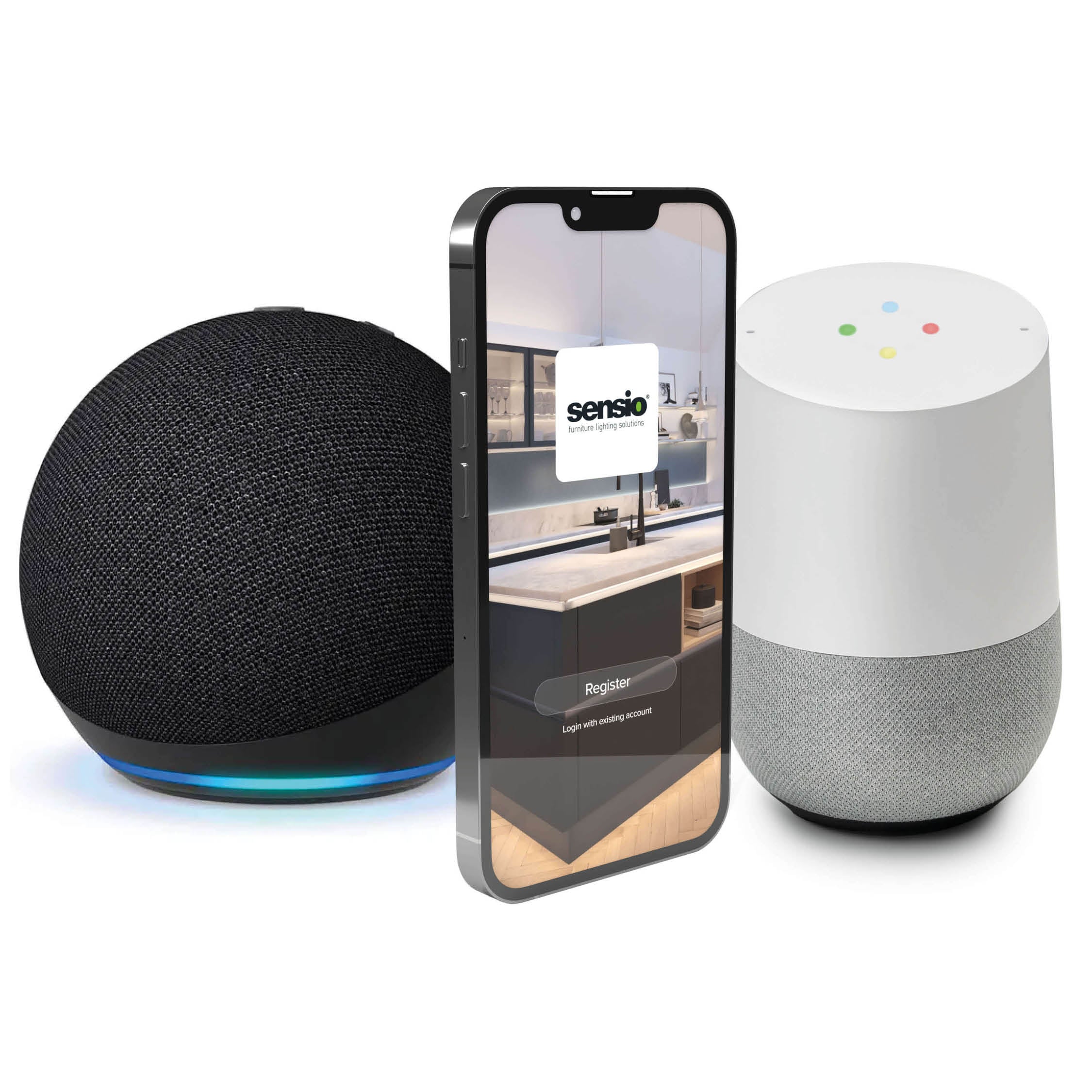 Empareje su controlador con la aplicación Link Sensio y controle la iluminación en su dispositivo inteligente. Puedes vincularlos a Alexa y Google para activarlos por voz.