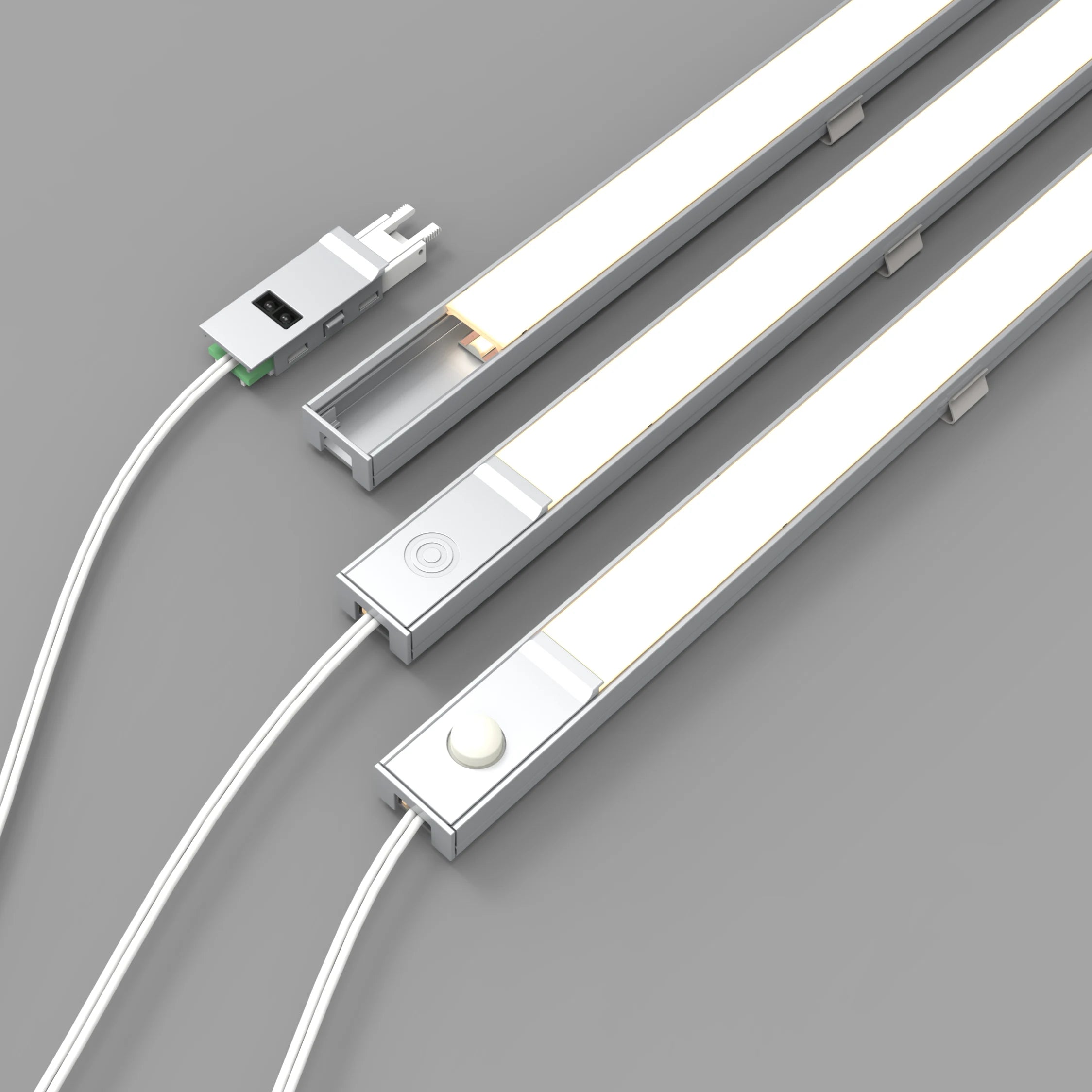 - Each sensor fits neatly within the profile housing, maintaining a clean, uninterrupted line of light with no visible dark spots.