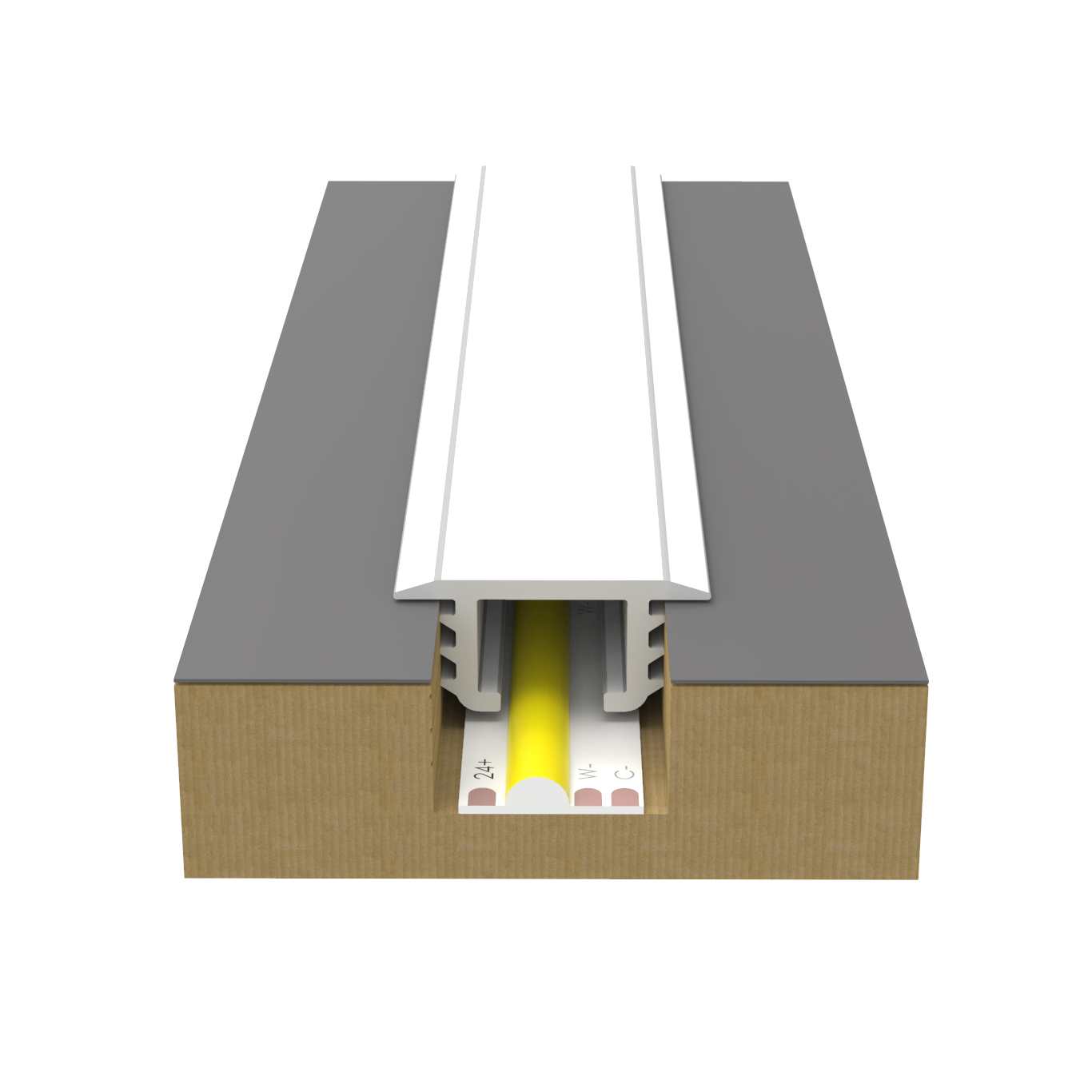 Empuje el Zella dentro del canal enrutado para cubrir la tira flexible. Utilice las tapas de extremo suministradas en cada extremo del perfil para terminar la instalación limpiamente.